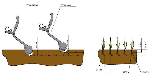 - štandardný 12,5 cm s prihnojovaním, hĺbka výsevu osiva a hnojiva je vzájomne nastaviteľná